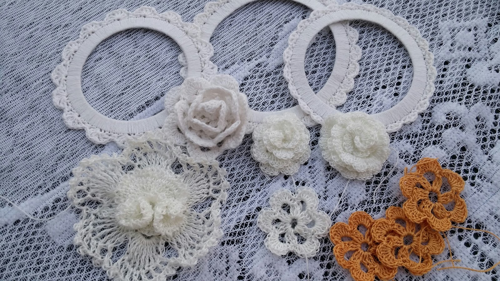 Хочу показать еще работы за этот период с вязанными цветочками и сами цветы конечно